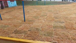Área externa da Emei Sabiá recebe novo gramado