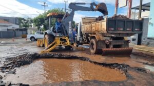 DAE trabalha em conserto de subadutora após rompimento